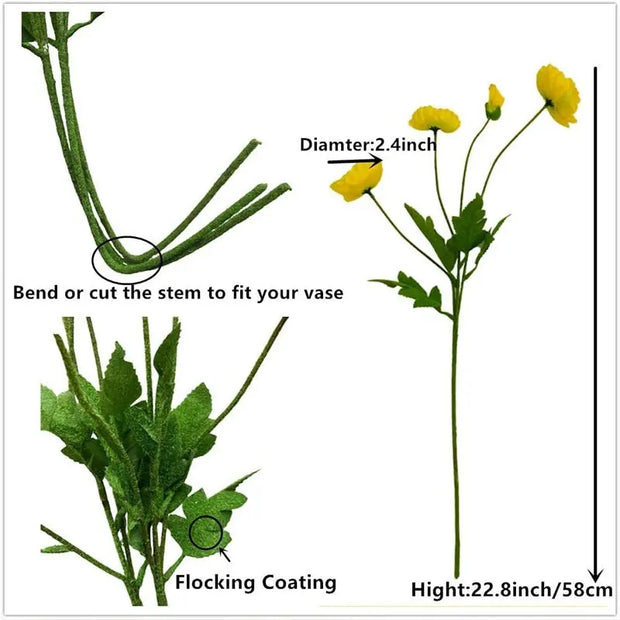 Poppy Silk Flowers - Long Stem for Home