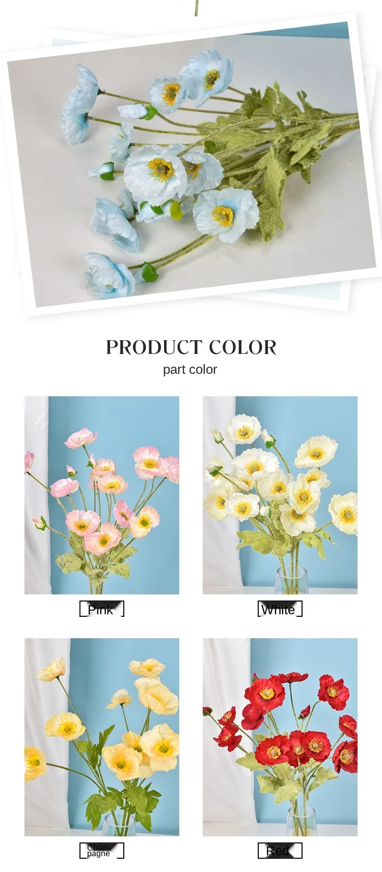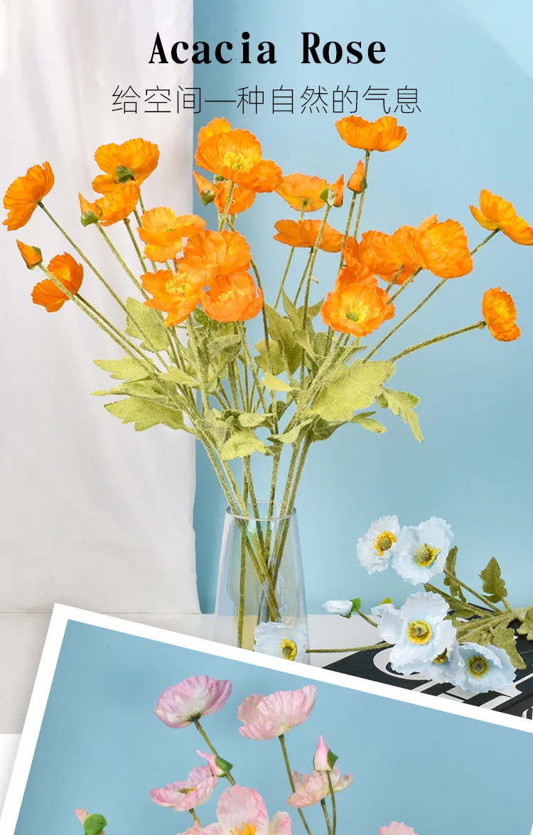 Poppy Silk Flowers - Long Stem for Home
