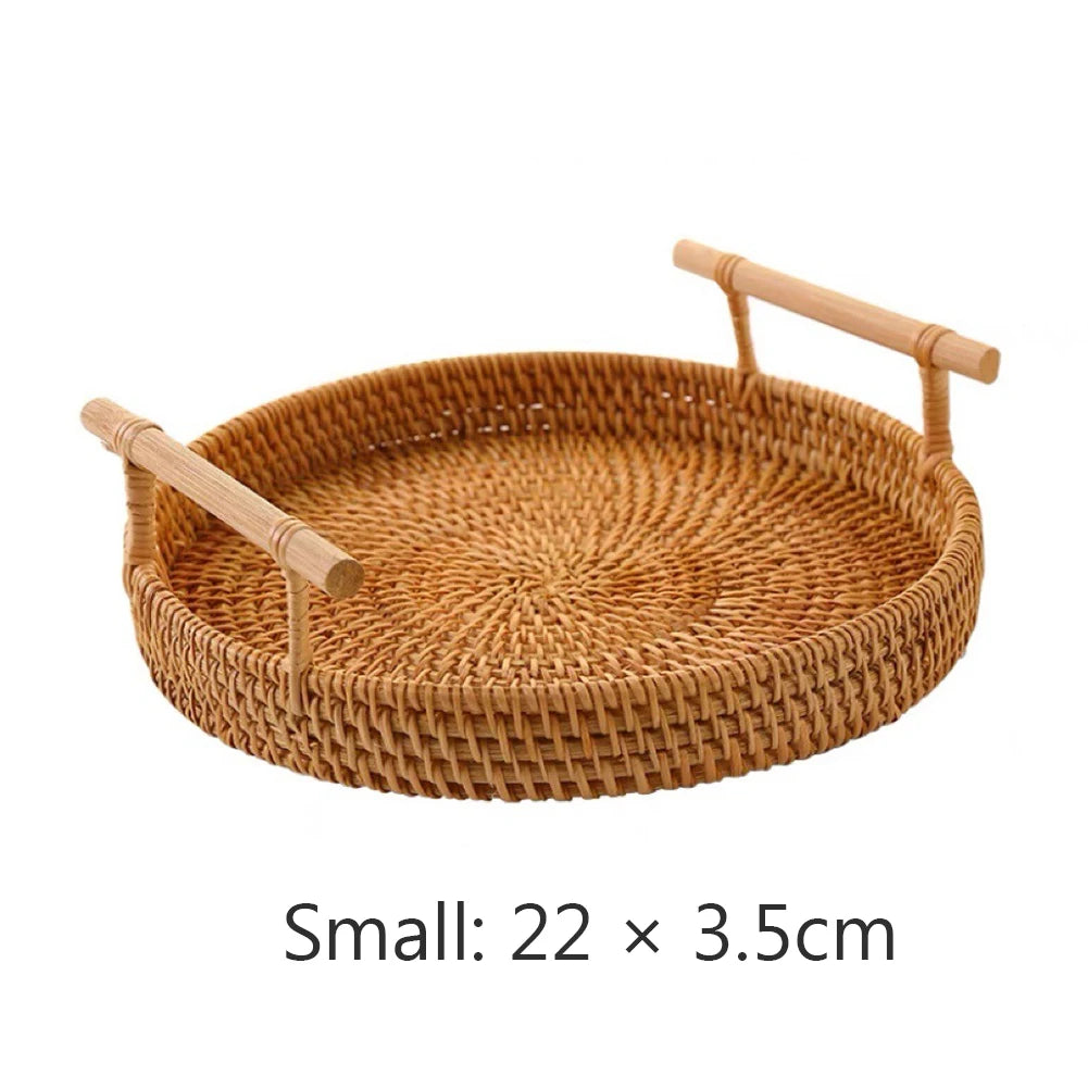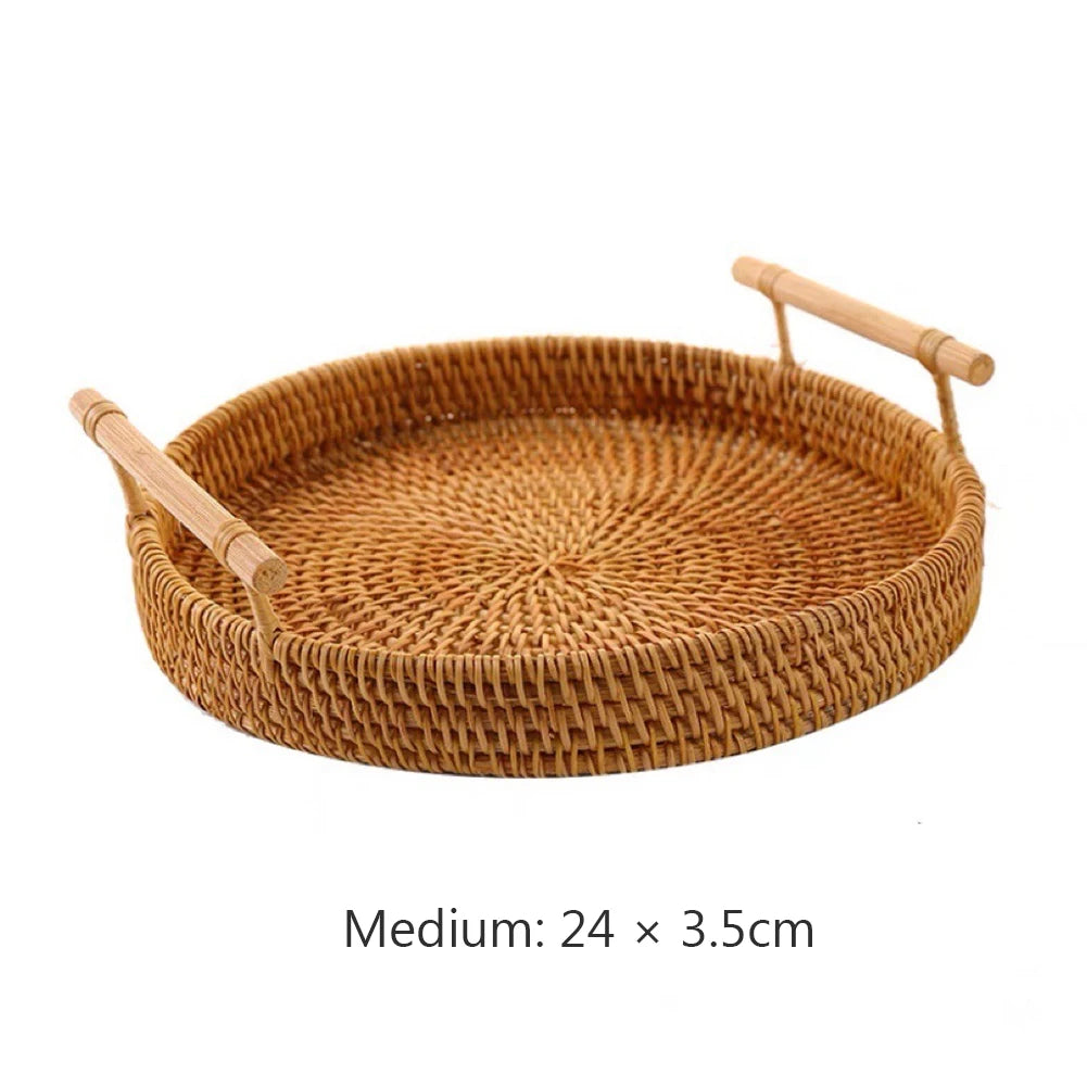 Rattan Tray Round Storage Basket Tray
