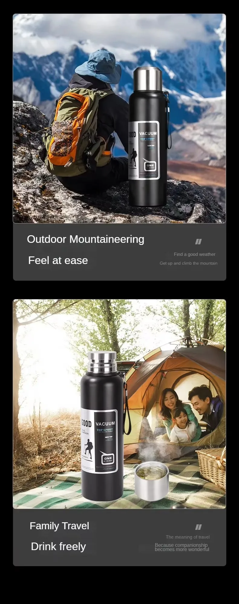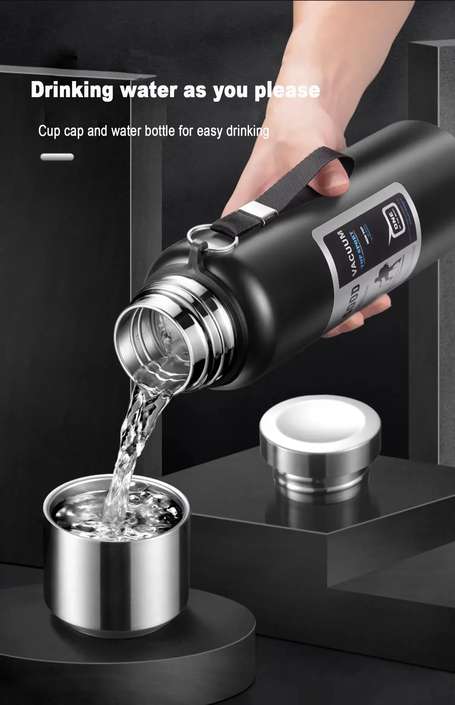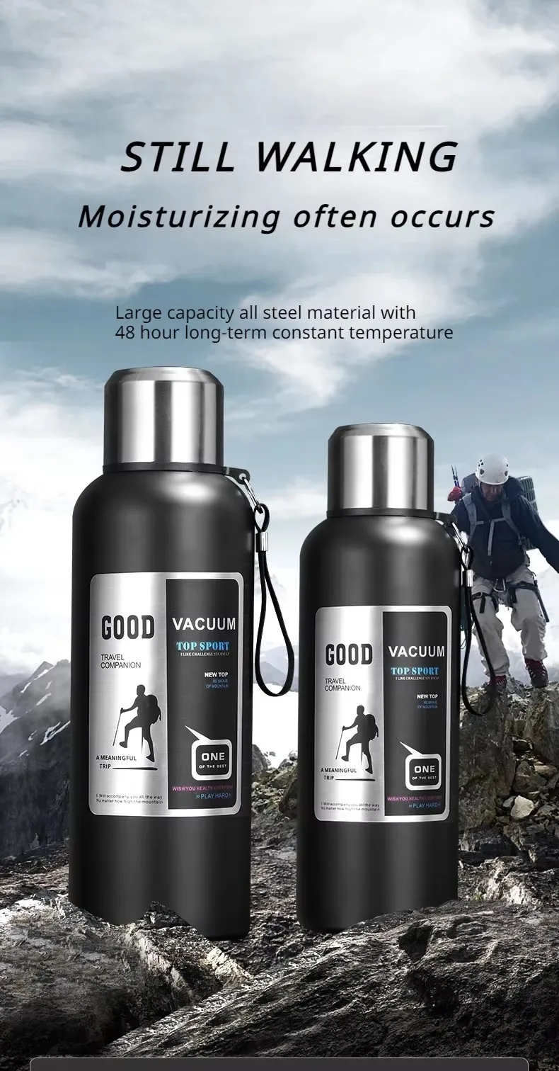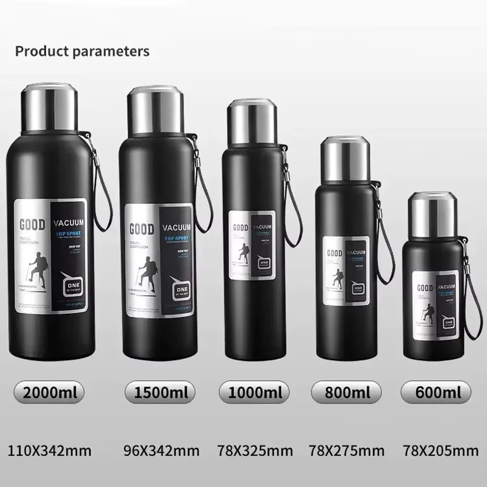 600-2000ML Large Capacity Stainless Steel Insulated Water Bottle – Cold Thermal Thermos Tumbler Travel Mug & Flask Pot