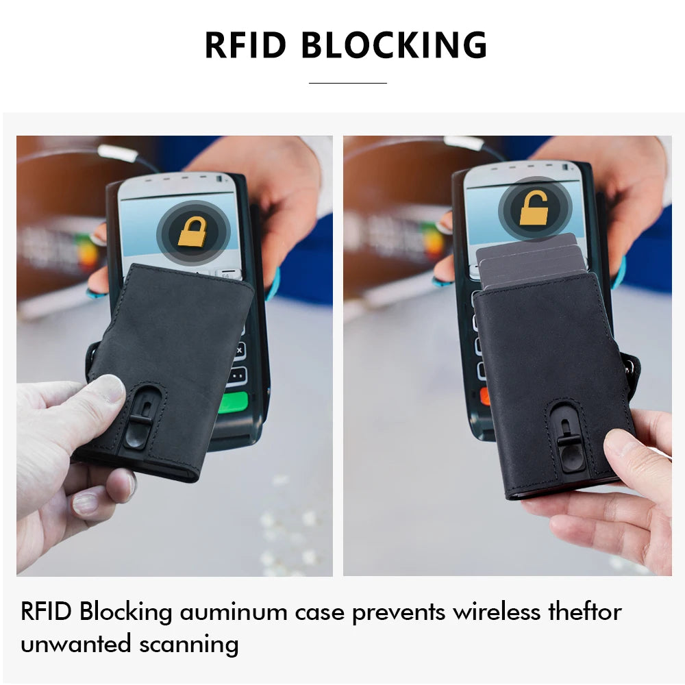 RFID Blocking Slim Leather Pop-Up Cardholder Wallet