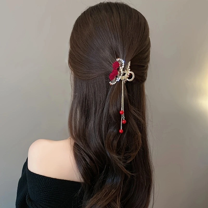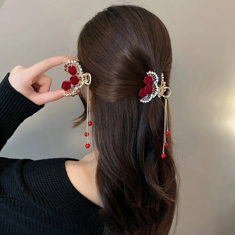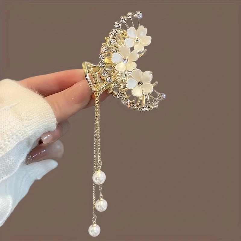 Rhinestone Pearl Tassel Hair Clip