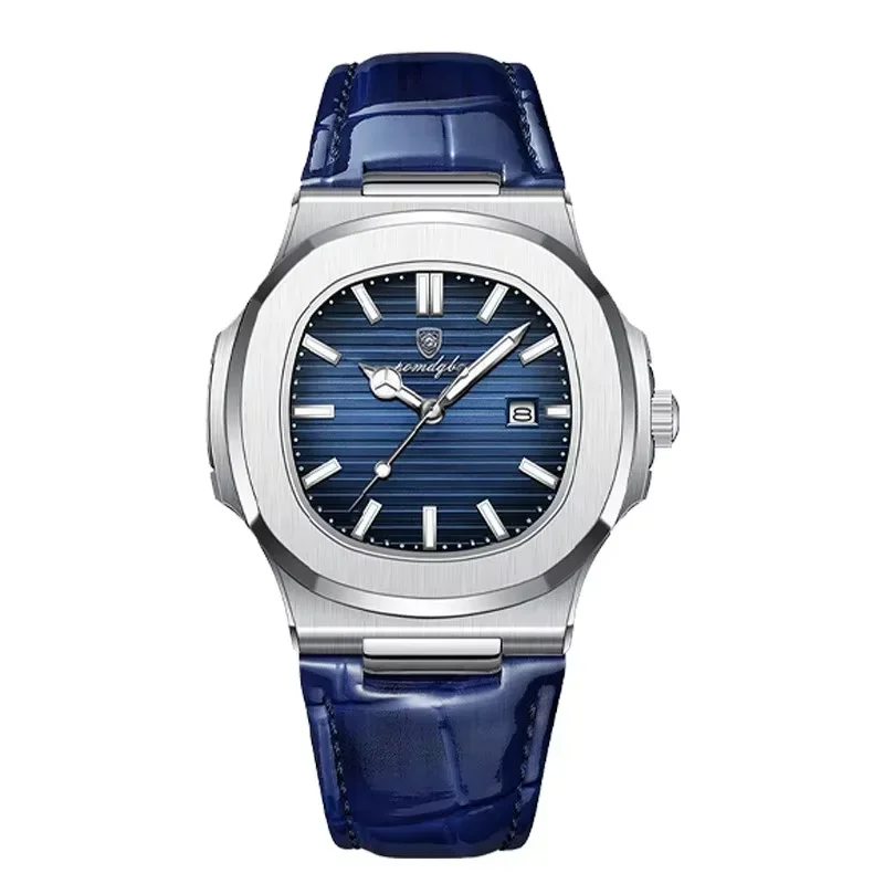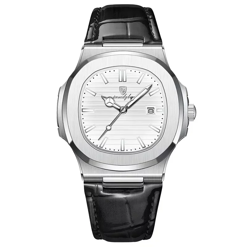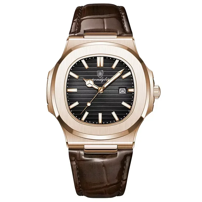 Square Men's Quartz Watch Date, Waterproof Design, Luminous Display and Leather Strap