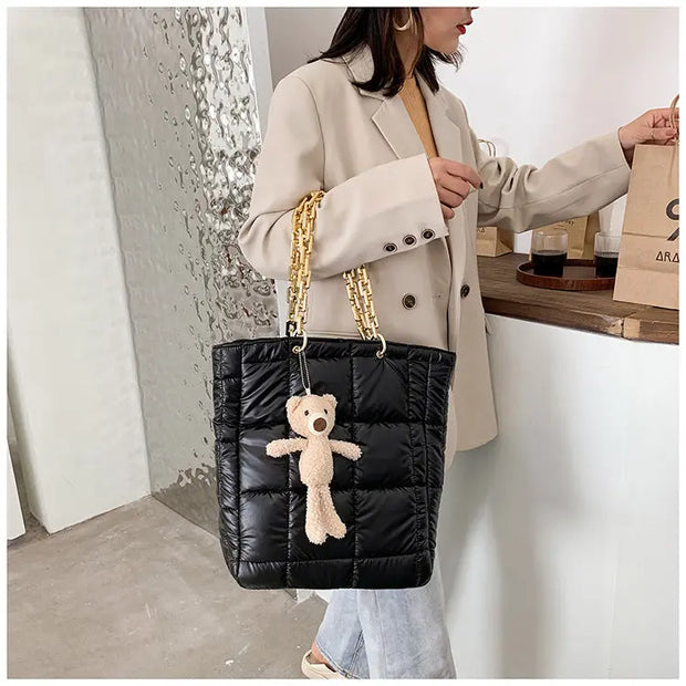 Thick Chain Tote Bags for Women Leather Big Shoulder Bag Ladies Large Capacity Shopper Purse Luxury Handbag