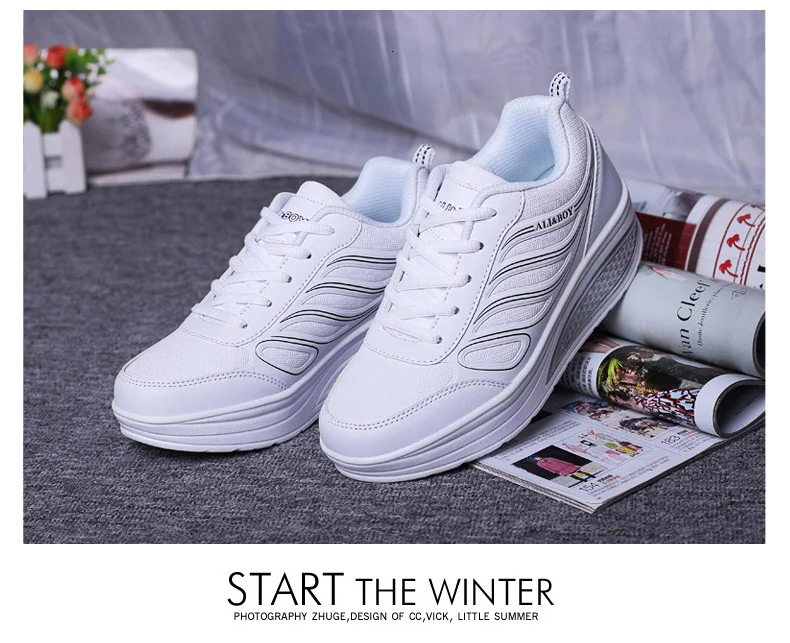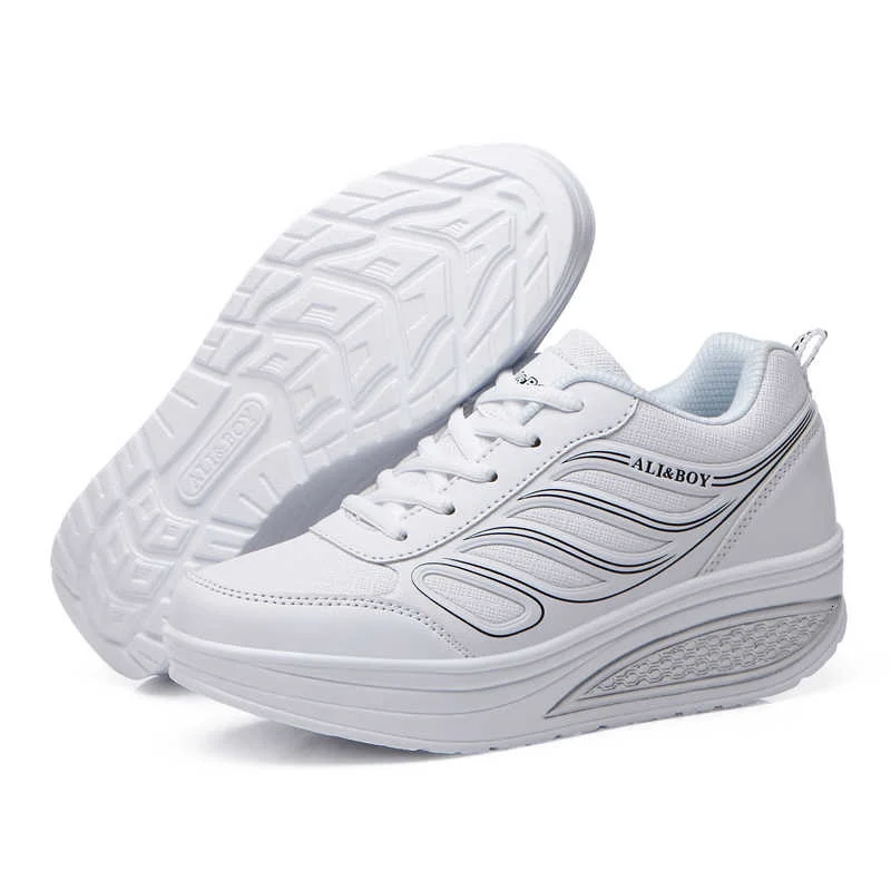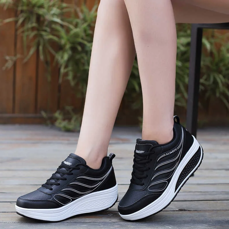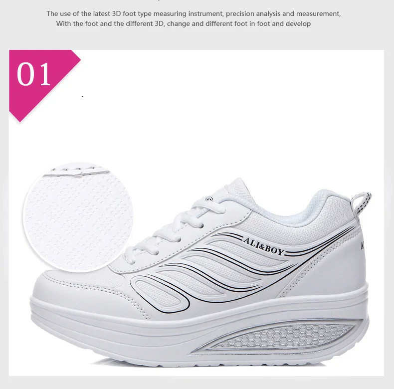 Height Increasing 5CM Platform Shoes Women Wedge Sneakers Leather Toning Shoes Soft Body Shaped Shoes Shock-Absorb Jumping Shoes