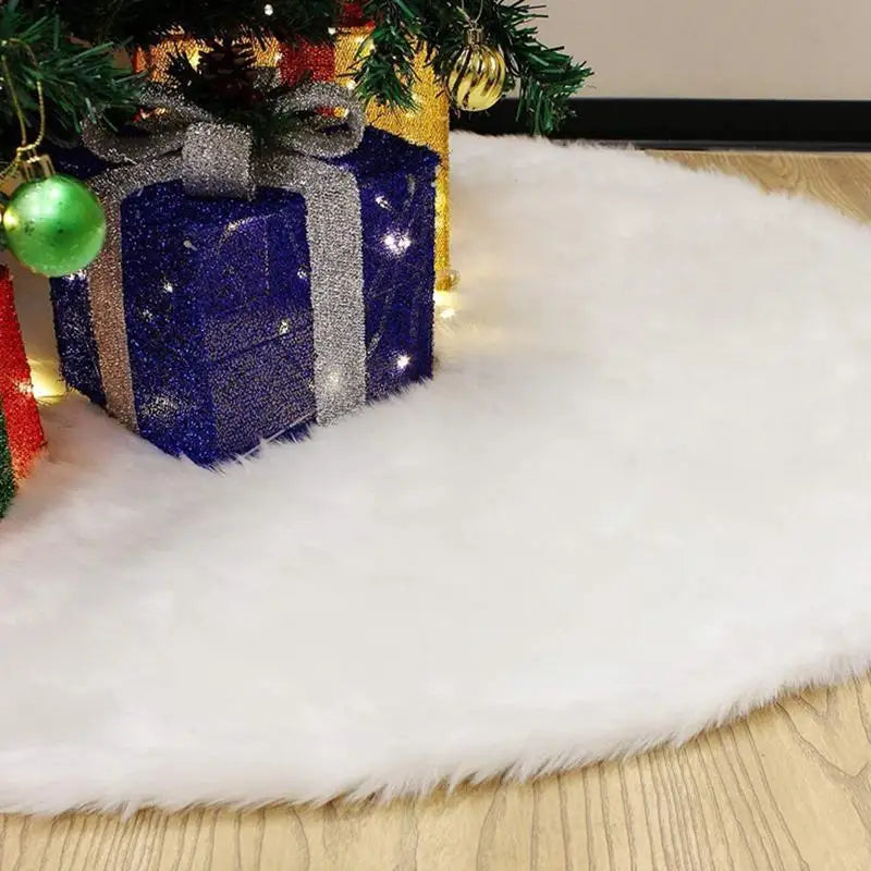 White Plush Tree Skirt with Silver Sequin Snowflake