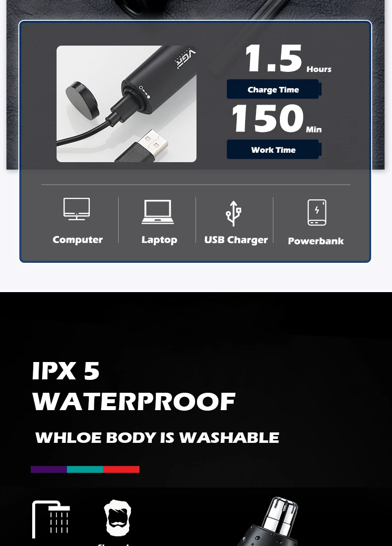 - Feature 6: Nose and ear trimmer