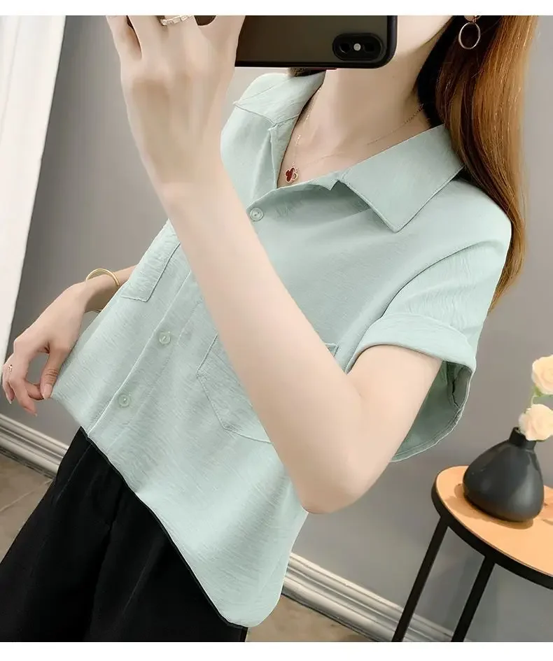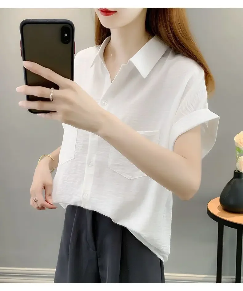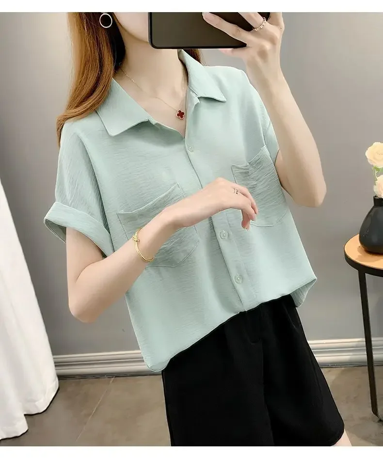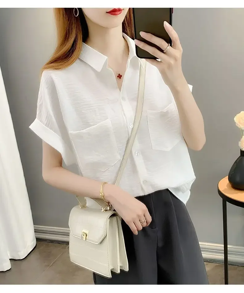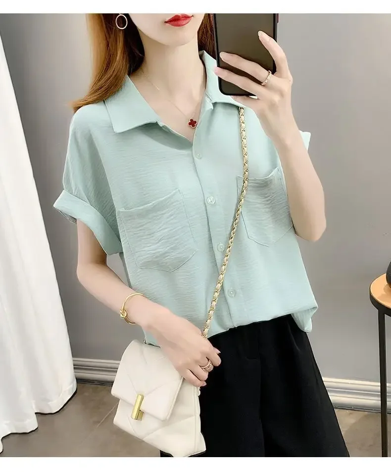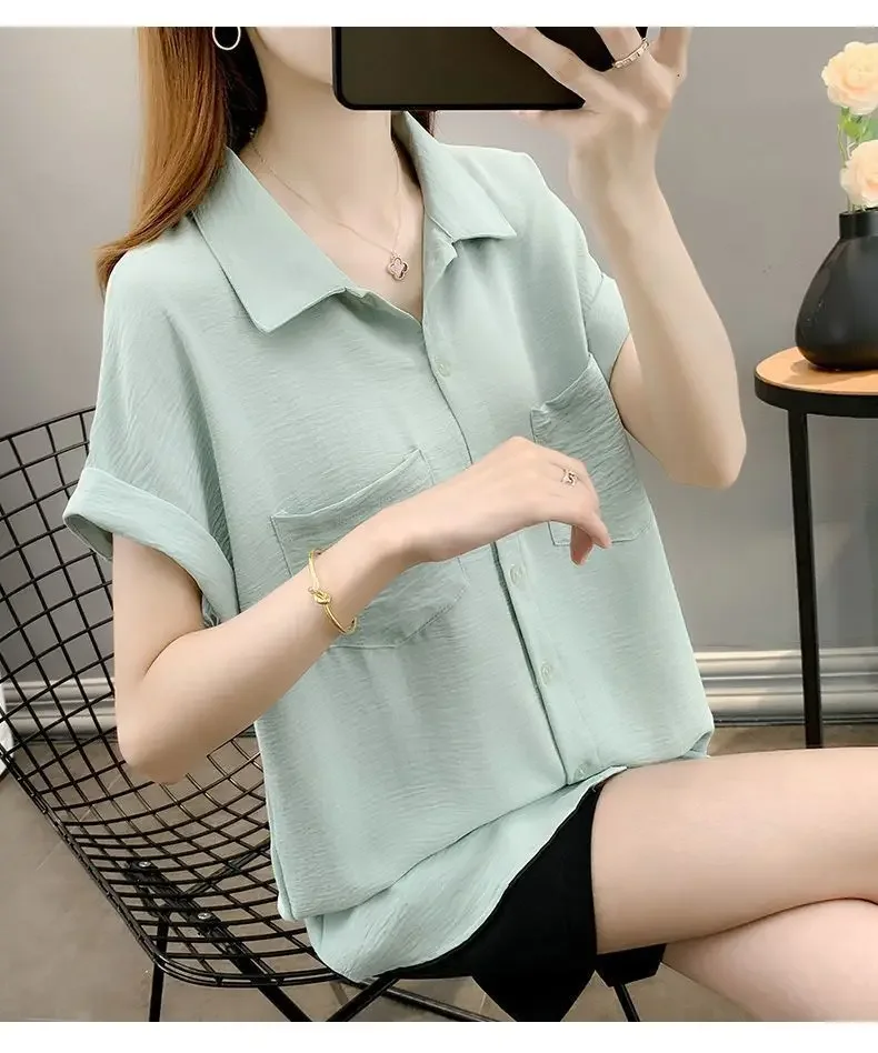Women's Loose Fit Short Sleeve Chiffon Thin Shirt